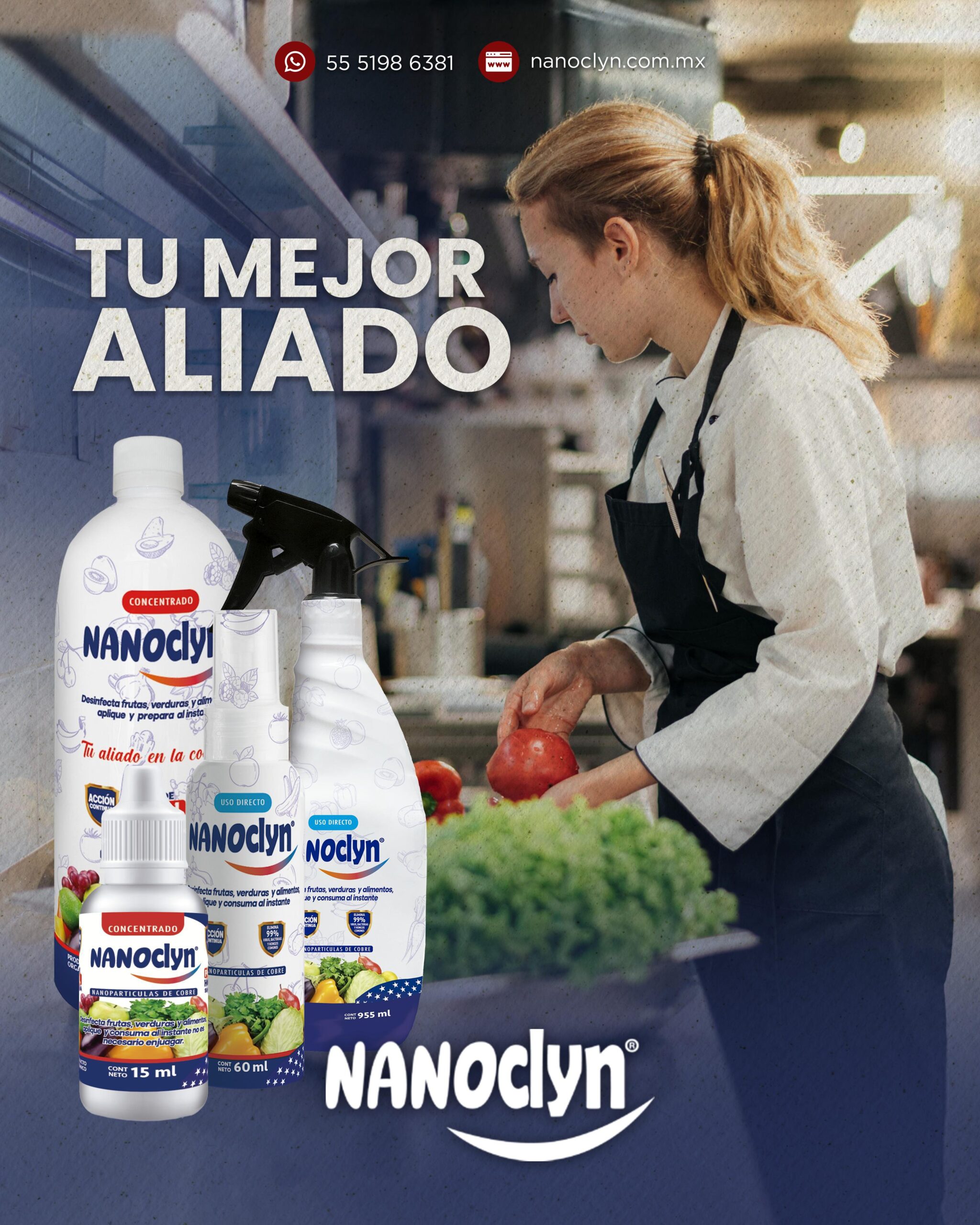Garantice la mayor higiene en sus alimentos con los productos de nanoclyn. Proteja a su familia y los que mas quiere con nuestros productos con nanoparticulas de cobre.